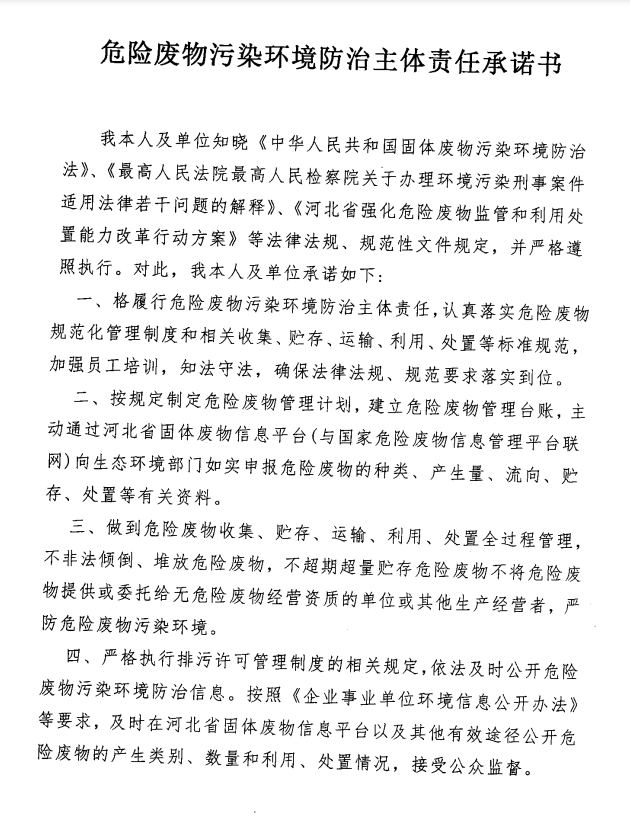 危險(xiǎn)廢物污染環(huán)境防治主體責(zé)任承諾書(shū)